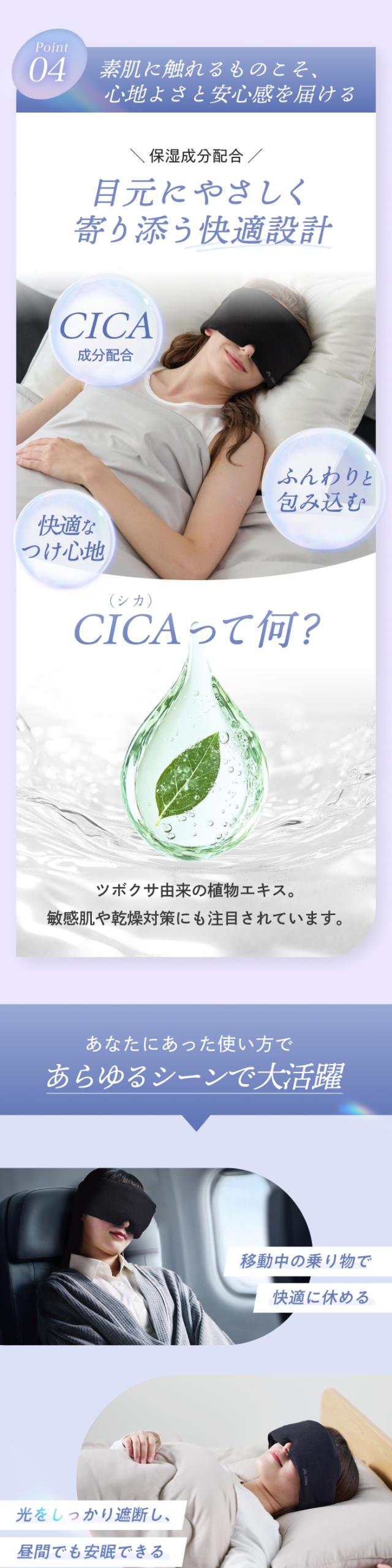 デリケートな目元に配慮し、ツボクサ由来の植物エキス「CICA成分」を配合。乾燥しやすい目元をやさしく包み込み、肌のバリア機能をサポートします。長時間つけてもカサつきにくく、摩擦による負担を抑えた設計。毎晩使うものだからこそ、安心して肌を預けられるやさしさにこだわりました。敏感肌の方にもお勧めです!