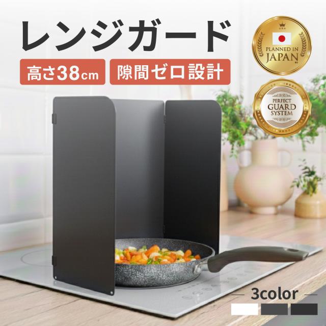 高さ38cmのハイタイプで徹底ガード 一般的なレンジガードよりも高い「38cm」の設計を採用しました。炒め物や揚げ物の際、上部から飛び散る広範囲の油ハネもしっかりカバー。