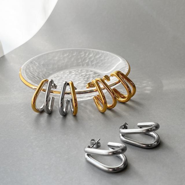 送料無料 U形ダブルステンレスフープピアス アレルギー対応 レディース 金属アレルギー対応 つけっぱなし アレルギー対応 ピアス 2連 フープピアス サージカルステンレス バイカラー シルバー ゴールド C字 スタッドピアス SUS316L