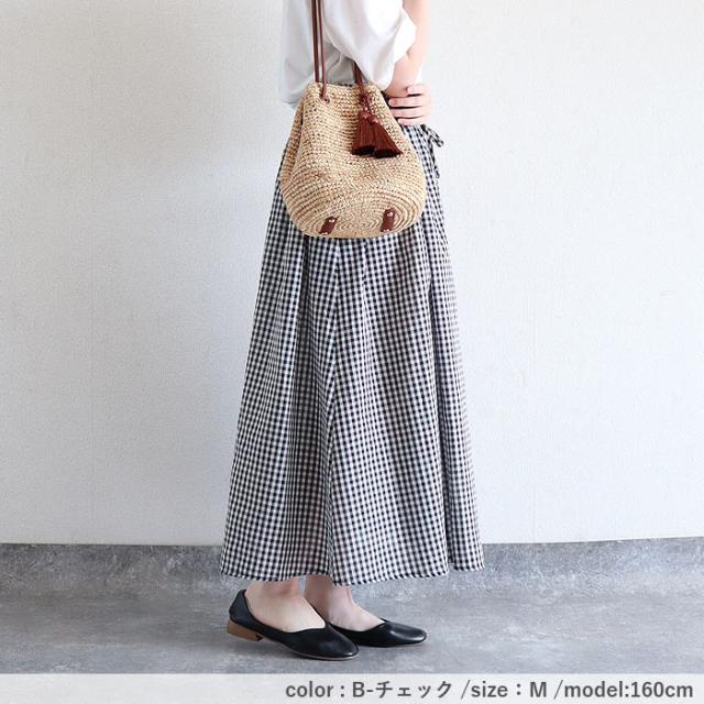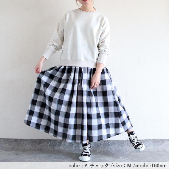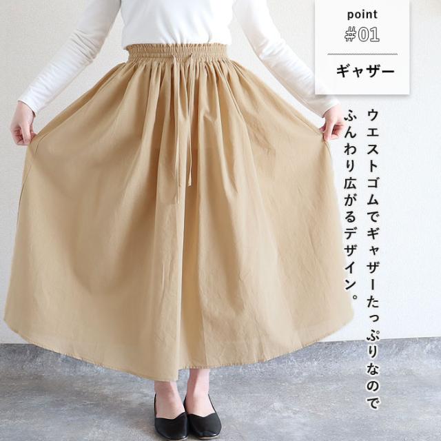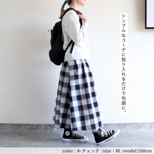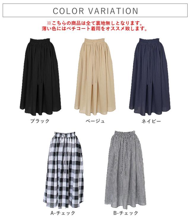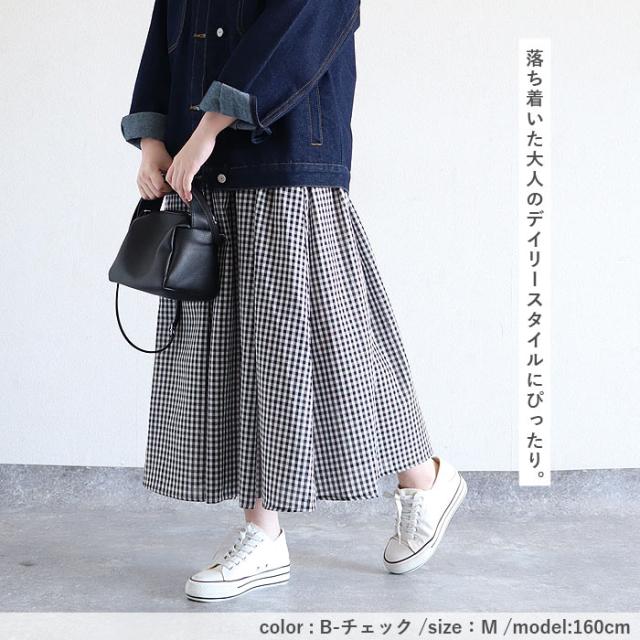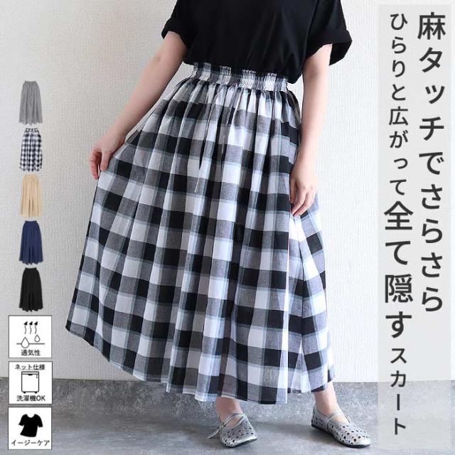 ボトムス レディース スカート ギャザースカート フレアスカート ロングスカート マキシスカート ロング丈 マキシ丈 綿混 コットン混 春 夏 秋 黒 黒色 ブラック 紺 紺色 ネイビー ベージュ 白 白色 ホワイト チェック柄 無地 ゆったり 楽ちん M L XL LL 40代 30代 50代 60代 大きいサイズ ゆったり 大人 おしゃれ ナチュラル カジュアル かわいい SALE セール uricca ウリッカ うりっか