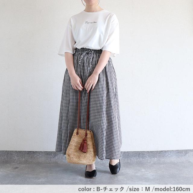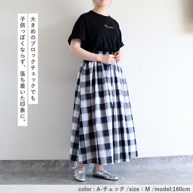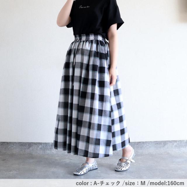 レディース スカート ギャザースカート ロング丈 マキシ丈 ウエストゴム おしゃれ かわいい 黒 白 チェック柄 春 夏 [郵3]^b522^