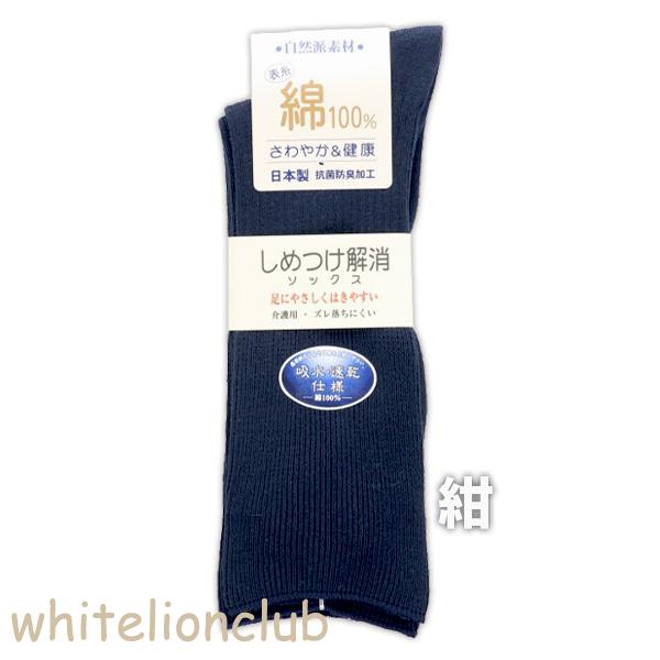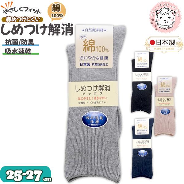 しめつけ解消 ソックス 表糸綿100% 日本製 抗菌防臭加工 クルー丈ソックス 25-27cm | クルー丈 メンズ 靴下 ソックス ズレ落ちにくい 介護