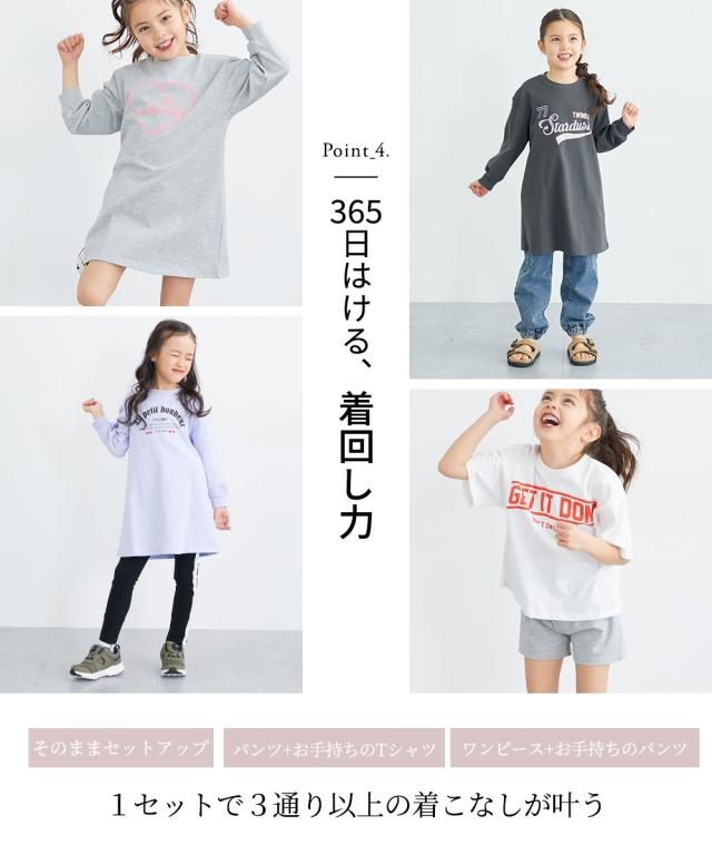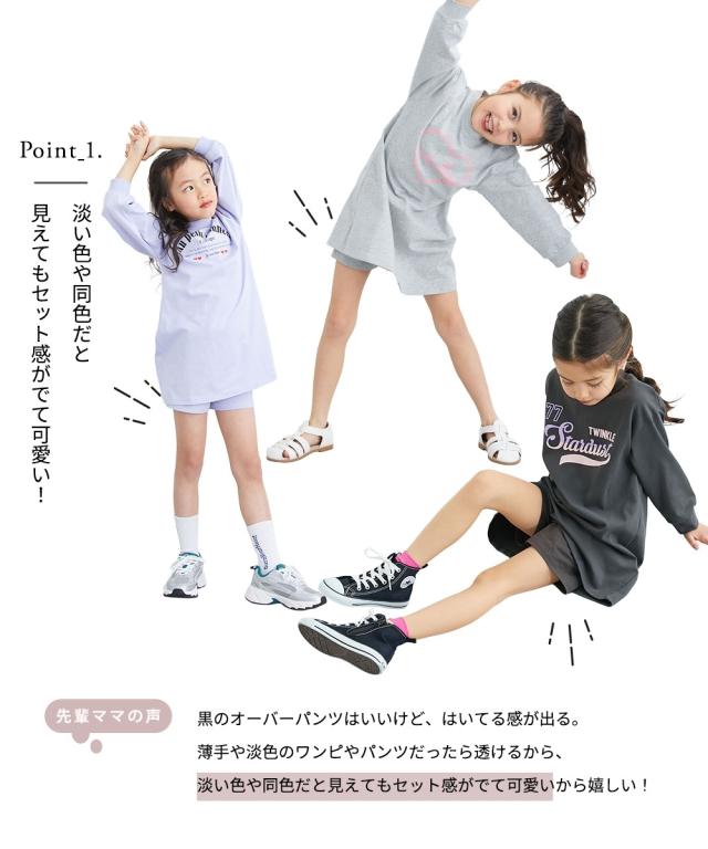「どっちが前かな」と迷う心配なし!忙しい朝の救世主、前後どちらでも履けるオーバーパンツと長袖ワンピースの嬉しい2点セットが登場しました。 元気に走り回っても、同色や淡い色のパンツ付きだからチラリと見えても下着っぽく見えず、安心しておしゃれを楽しめます。 先輩ママの「こんなの欲しかった!」を形にした、実用性と可愛さを兼ね備えた自慢のアイテム。 本体は綿100パーセントでお肌に優しく、毎日のお着替えをハッピーにサポートしてくれる一着です。 ■デザイン ・お着替えラクラク!「前後どっちもOKなパンツ」 セットのオーバーパンツは、前後どちらでも履ける設計になっています。 お子様が一人で履いても間違えることがないので、忙しい朝の時短にも繋がり、お子様の「自分でできた!」という自信も育みます。 ・チラ見えしても可愛い「計算されたシルエット」 「パンツが見えると下着っぽく見えてしまう」という悩みを解決! ワンピースと同色や馴染みの良いカラー、そして下着っぽく見えない形にこだわっているので、元気に遊ぶ日も安心です。 ・着回し力バツグン!「3通りの楽しみ方」 そのままセットアップで着るのはもちろん、ワンピースにお手持ちのレギンスを合わせた