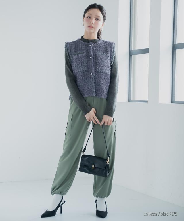 【150cm前後の小柄・低身長女性向けブランド -Petitjo- 】 カジュアルときれいめのいいとこ取りを叶えるカーゴパンツ。 小柄さんがすっきりと着こなせるシルエットでお作りしました。 ■デザイン 【小柄さん設計】 着丈やウエスト、ヒップにこだわり、ダボつかないよう調整しました。 足のラインを綺麗に見せてくれるので今っぽく洗練された印象に。 カーゴポケットがアクセントになっています。 ■素材 柔らかく軽やかで触り心地の良い素材です。 これからの春夏の時期にサラッと着用いただけます。 ■おすすめのスタイリング トップスはコンパクトなシルエットのものにすると全体的なコーデがまとまるのでおすすめです。 ツイードベストやトレンドライクなヘンリーネックTシャツなどを合わせて甘辛MIXコーデにしても