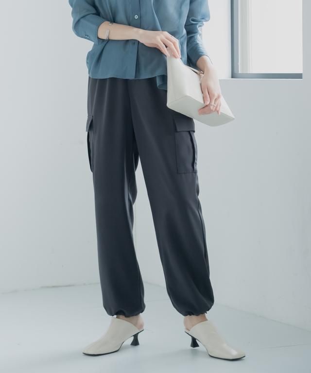品質=ポリエステル95%・ポリウレタン5%裾ゴム入り透け感:なし伸縮性:なし生地の厚み:普通光沢感:ややあり裏地:なしポケット:あり(前2・カーゴポケット2)ウエスト:総ゴム・紐入り季節:春夏秋向きシルエット:普通 原産国:中国製 備考:洗濯機OK(ネット使用) ※単位:cm※サイズの誤差は多少発生します。※サイズ表は仕立てサイズになります。仕立てサイズとは、実際に商品を測った時のサイズのことです。