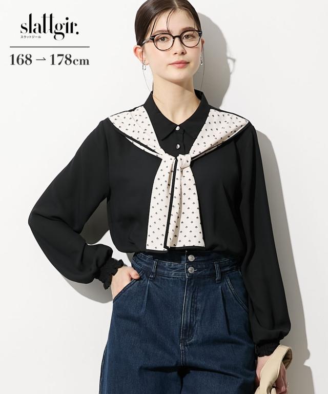 シャツ ブラウス トールサイズ レディース 高身長 スカーフ付 春 大きいサイズ | M/L | ニッセン nissen
