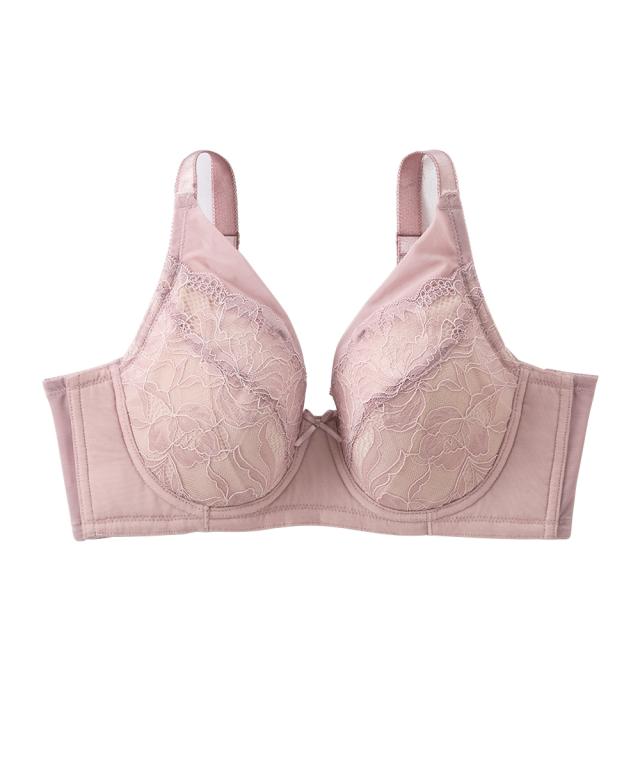 重力に打ち勝つノンワイヤーフルカップブラジャー お悩みポイント ・バストが重くて下垂し支えられない、持ち上げられない ・楽に着用したいけど、ノンワイヤーだとバストが横に流れて太ってみえる ・バストが左右で大きさが異なるので、いつもどちらかの胸が合わない こだわりポイント ・カップ台に厚みのある不織布を使用、更に下カップには短いボーンを内蔵し、バストを下から支えて持ち上げる ・ワイヤーがなくてもバストが中心によるリフトアップを内蔵し、更に脇ボーンで脇肉流れ防止する ・バスト中心を低く、カップ裏は3枚接ぎで、丸くて自然なバストシルエットでスッキリ ・カップ上辺の薄手のパワーネットがバストを優しくすっぽり包み込む ・バストが左右で大きさが異なるのでいつもどちらかの胸が合わない、取り外しできるパッドをつけました ・綺麗な大花レースのフルカップブラ ・バック部分は生地2重でしっかりサポート ・バックホックは3段3列でしっかり安定