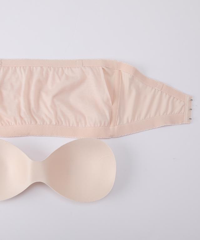 夏の肌見せスタイルにぴったりなチューブトップ【3段ホックで抜群の安定感】背面の3段ホックで、自分にぴったりのホールド感に調節可能で動いてもズレにくい 【胸が離れにくい一体型パッド】左右が繋がった「ピーナッツ型パッド」だから、カップがずれにくく、胸を寄せる効果も 【サイドボーン入りで胸を支える】脇にサイドボーン入りでしっかり胸の位置をキープ 【谷間見えを徹底ガード】上下の幅広ゴムで「チラ見え」を防止 【美しいシルエット】継ぎ目の少ないなめらかな表面仕上げで、アウターにひびきにくい 【肌あたりの良い生地】やわらかな素材で肌当たりやさしい