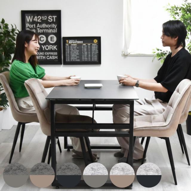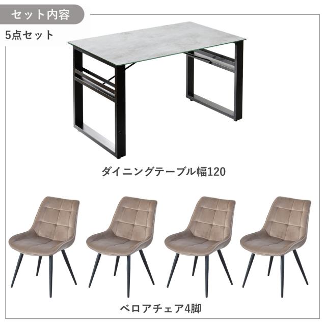 ダイニングテーブル&チェア 5点セット 幅120cm セラミック天板 ベロアチェア ( ダイニングセット テーブル 食卓テーブル 4人掛け ダイニングチェア 収納付き 長方形 食卓机 石目天板 小物 調味料 収納 配線 熱 傷 強い デスク )