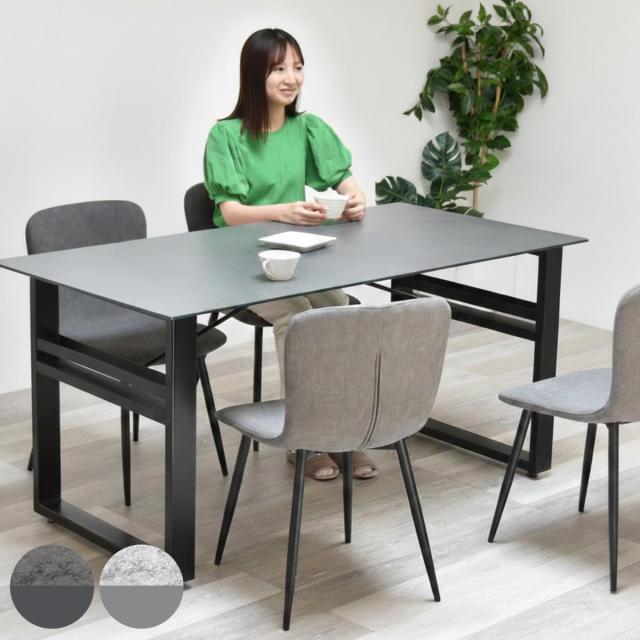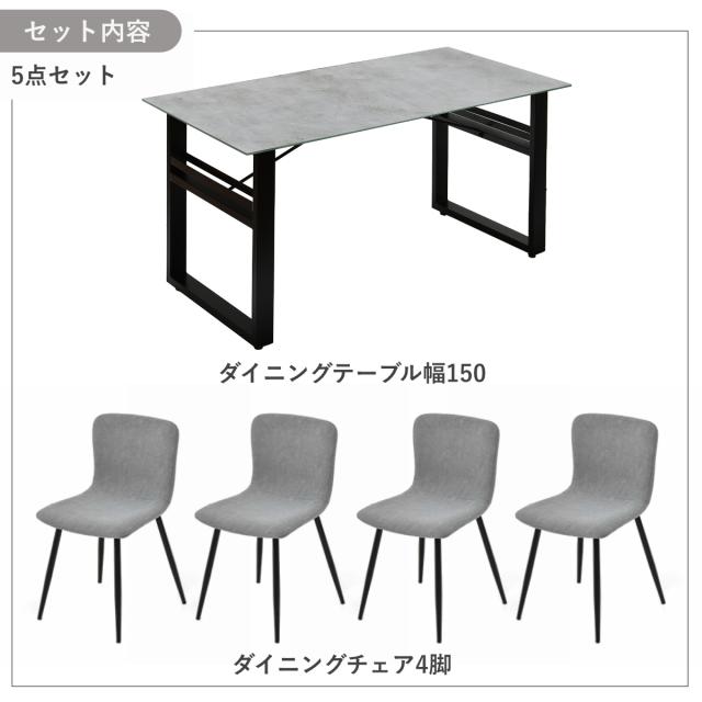 幅150cmのセラミック天板テーブルとチェア4脚の5点セット。熱やキズに強い天板に、石目調の上質な表情がダイニングを落ち着いた雰囲気に演出します。チェアと調和し、機能性と美しさを兼ね備えた空間に。