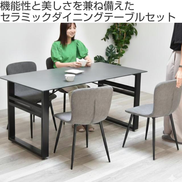 ダイニングテーブル&チェア 5点セット 幅150cm セラミック天板 フェムトチェア ( ダイニングセット テーブル 食卓テーブル 4人掛け ダイニングチェア 収納付き 長方形 食卓机 石目天板 小物 調味料 収納 配線 熱 傷 強い デスク )