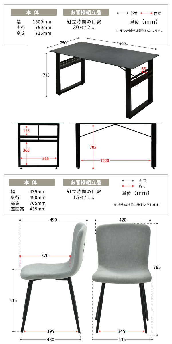 | 内容量 | テーブル1台 チェア同色4脚セット |