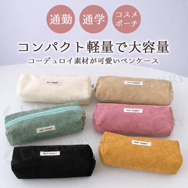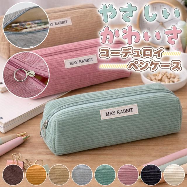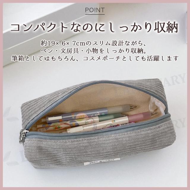 コーデュロイ ペンケース 無地 筆箱 筆入れ ファスナー 軽量 通勤 通学 化粧ポーチ コスメポーチ マルチポーチ シンプル ふで箱 コンパクト 大容量 レトロ おしゃれ かわいい 女子 小学生 中学生 高校生 オフィス レディース ギフト プレゼント 文房具 文具