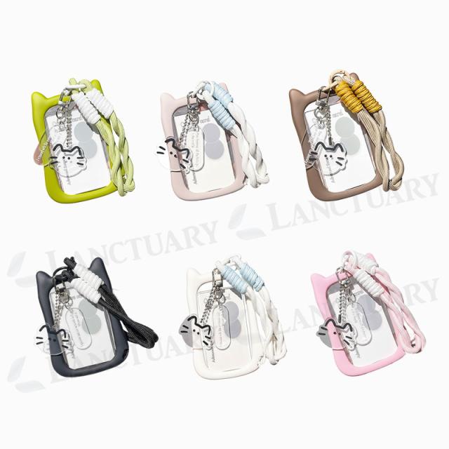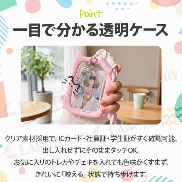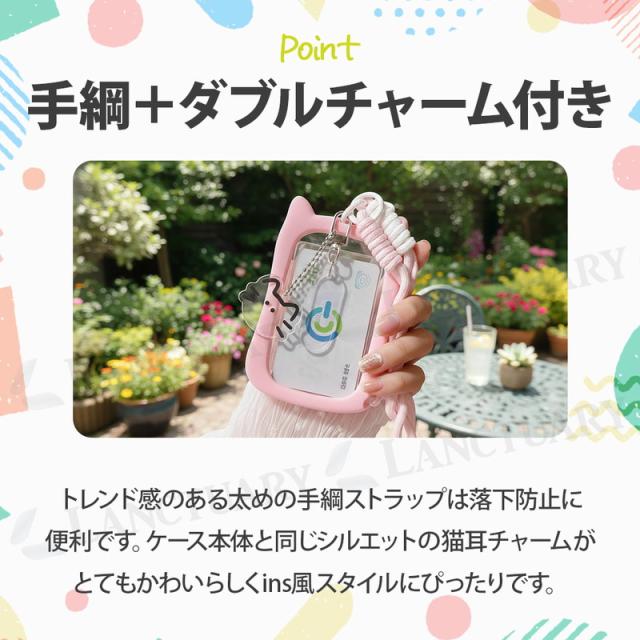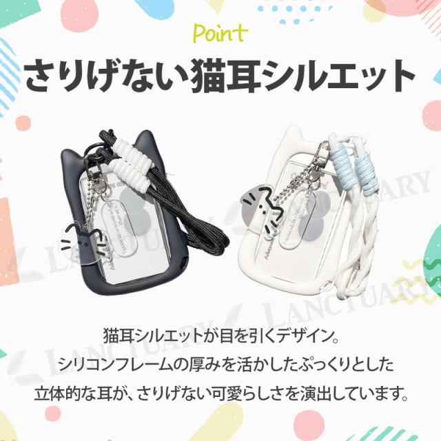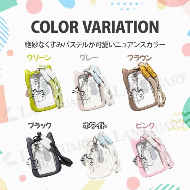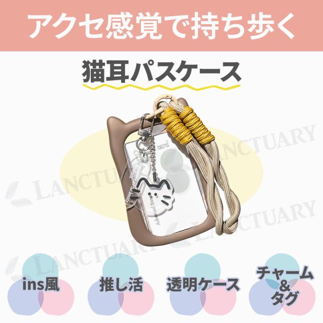 猫耳パスケース ins風 推し活 透明ケース チャーム タグ カード トレカ カード ミニフォト シリコンフレーム 社員証 学生証 手編ストラップ 可愛い おしゃれ レディース 猫好き 紛失防止 定期 クリア窓 くすみカラー アクリルチャーム SNS映え