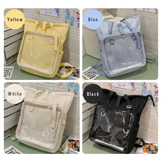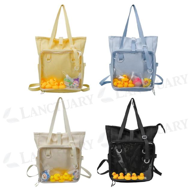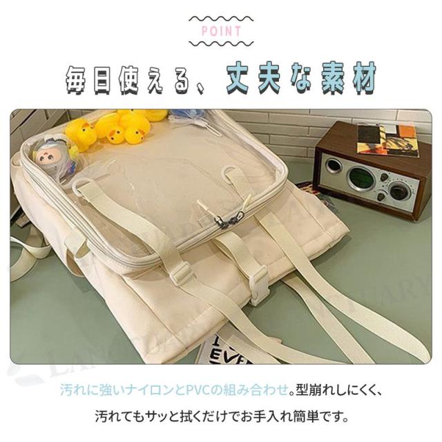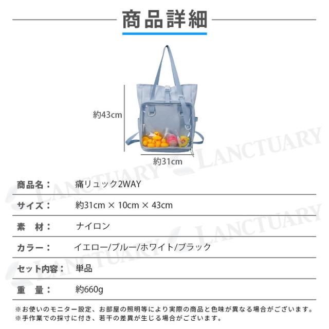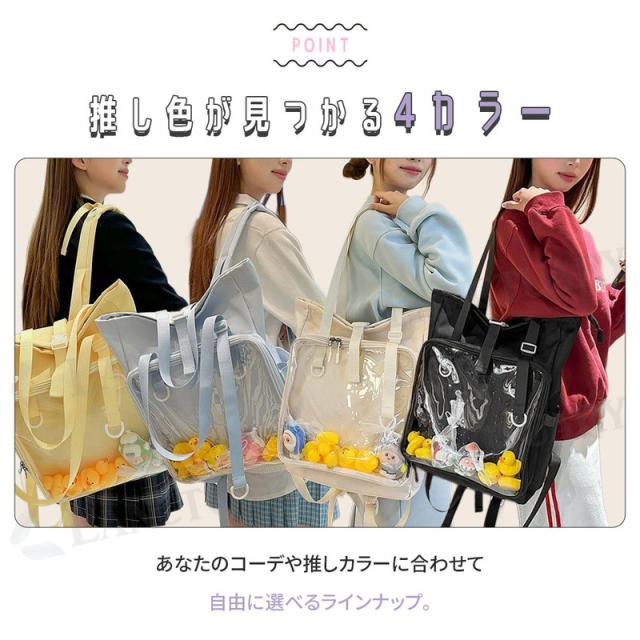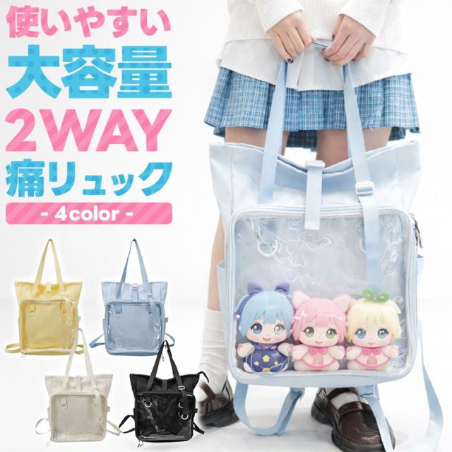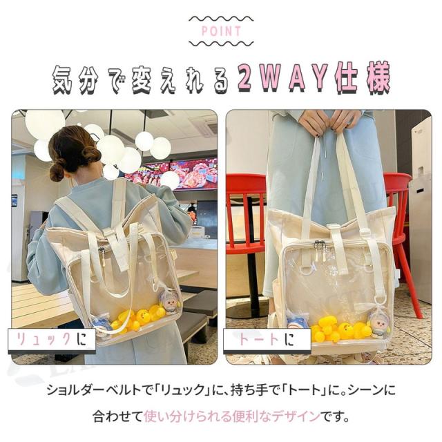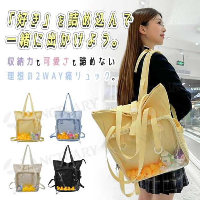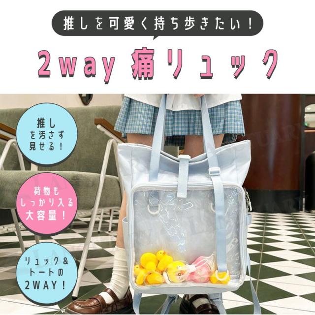 痛リュック2WAY 推し活 バッグ 痛バ 透明 魅せトート 大容量 缶バッジ ぬいぐるみ 収納 リュックサック トートバッグ かわいい ナイロン素材 PVC クリア ライブ イベント コミケ 遠征 通学 通勤 習い事 サブバッグ 軽量 丈夫 お手入れ簡単 A4サイズ