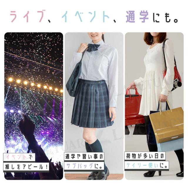 バッグは毎日使える丈夫なナイロン製です。 汚れや型崩れに強く、ライブ会場など人混みでも安心してお使いいただけます。