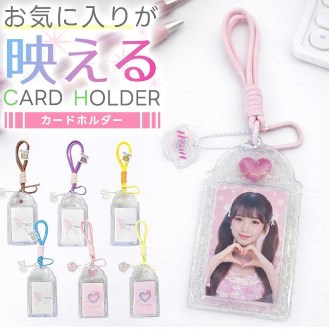 カードホルダー トレカケース 推し活 グッズ 収納 持ち運び ストラップ付き 透明 窓付き ぱしゃこれ チェキ 韓国雑貨 オタ活 デコ リボン ハート かわいい おしゃれ 防水 PVC 硬質ケース アイドル アニメ ライブ イベント ギフト プレゼント 通学 通勤