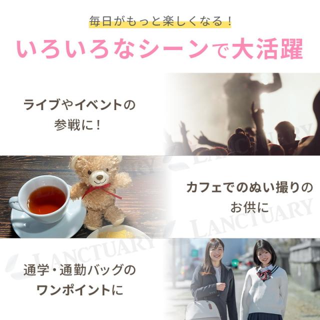 リボンタイプはブルーやブラウンなど落ち着いた4色、ハートタイプはパッと目を引くピンクとイエローの2色から選べます。 自分の推しカラーを選ぶのはもちろん、バッグの色に合わせてコーディネートするのもおすすめです。 カバンの中で迷子にならないちょうどいいサイズ感で、使いやすさにもこだわっています。