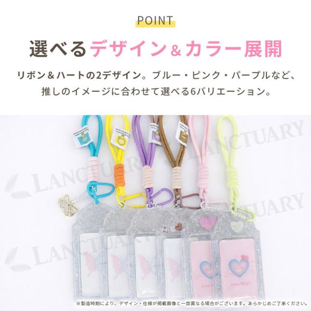 | 主な仕様 | 商品名:カードホルダー サイズ:13cm × 7.5cm 素材:PVC 重量:約30g デザイン:リボン(4色)、ハート(2色) |