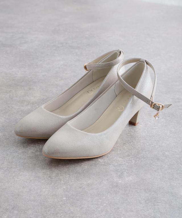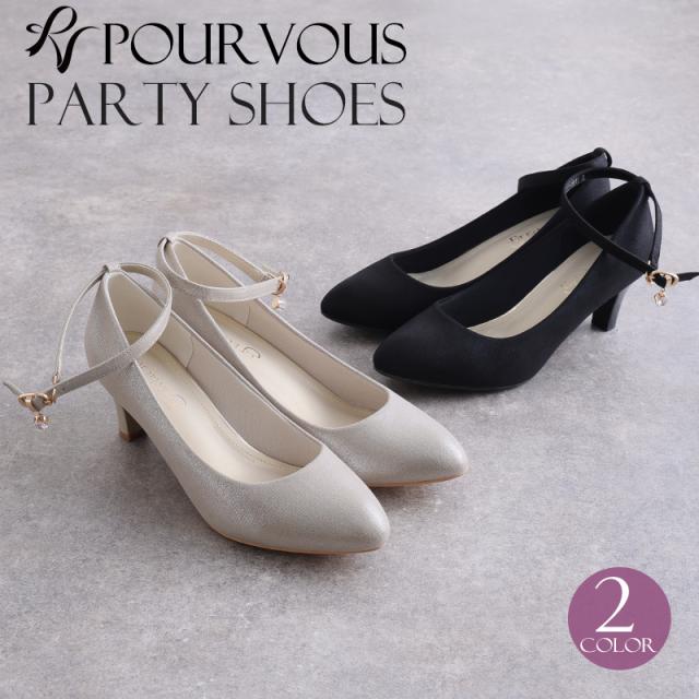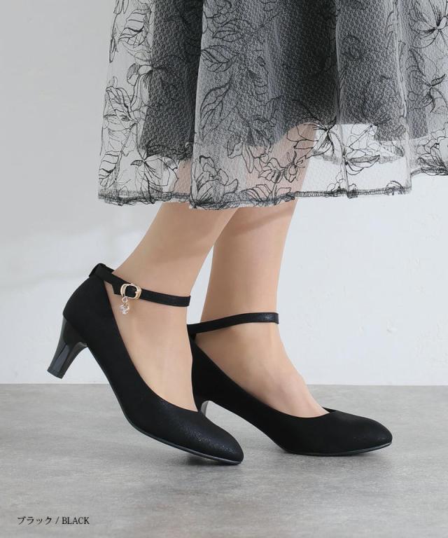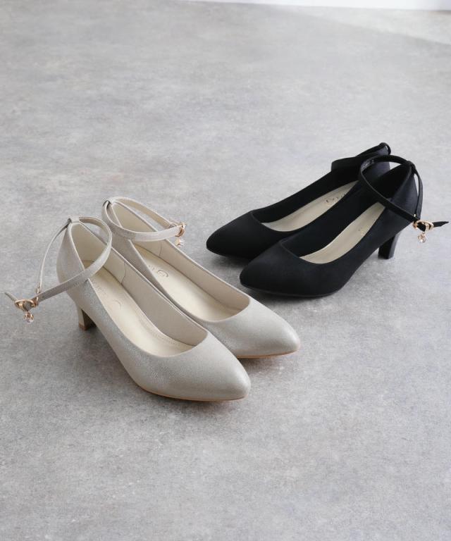 チャーム付きストラップパンプス【578251282】20代・30代・40代・50代パーティーシューズ・痛くないパンプス・ローヒール・ピンヒール・ヒール・ラメ・レース・ポインテッド・デザインヒール・フォーマル・大きいサイズ・結婚式・二次会・同窓会・お呼ばれ・謝恩会・お宮参り・女子会・デート・入学式・卒業式・パーティー・冠婚葬祭