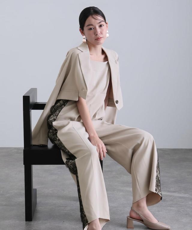 パンツ横のレースが華やかさを添え、シンプルな中に女性らしさをプラスします。