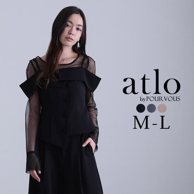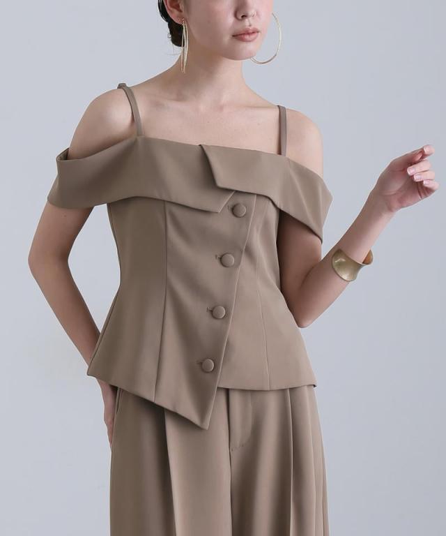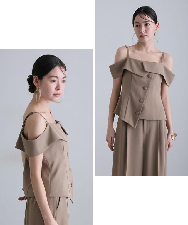 肩まわりをすっきり見せるオフショル風デザインで、女性らしい抜け感をプラス。