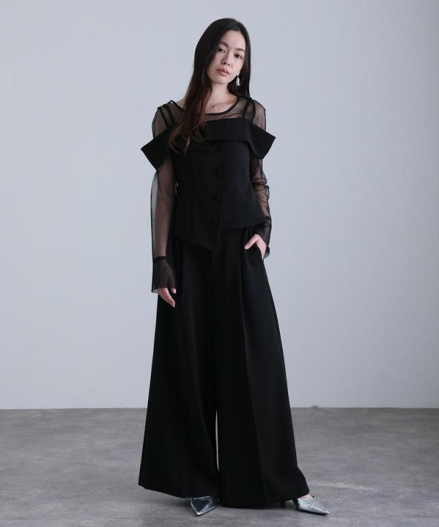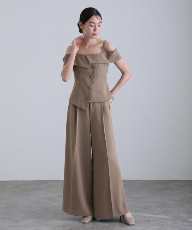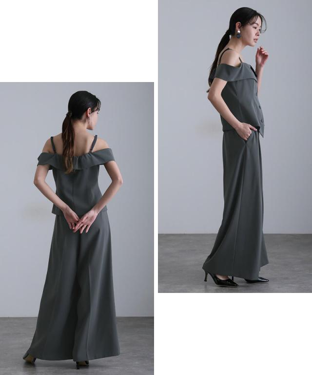 584251220 オフショルダートップス ワイドパンツセット ワンピース パーティードレス オケージョン 大きいサイズ 結婚式 ドレス かっこいい お呼ばれ オケージョンドレス フォーマル