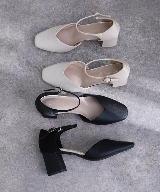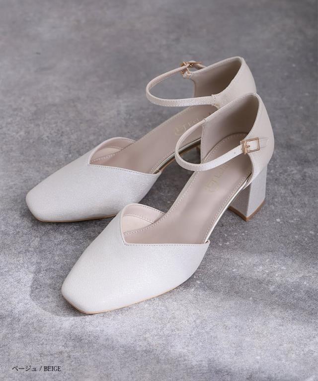 ■ストラップ×スクエアトゥの上品チャンキーヒールパンプス