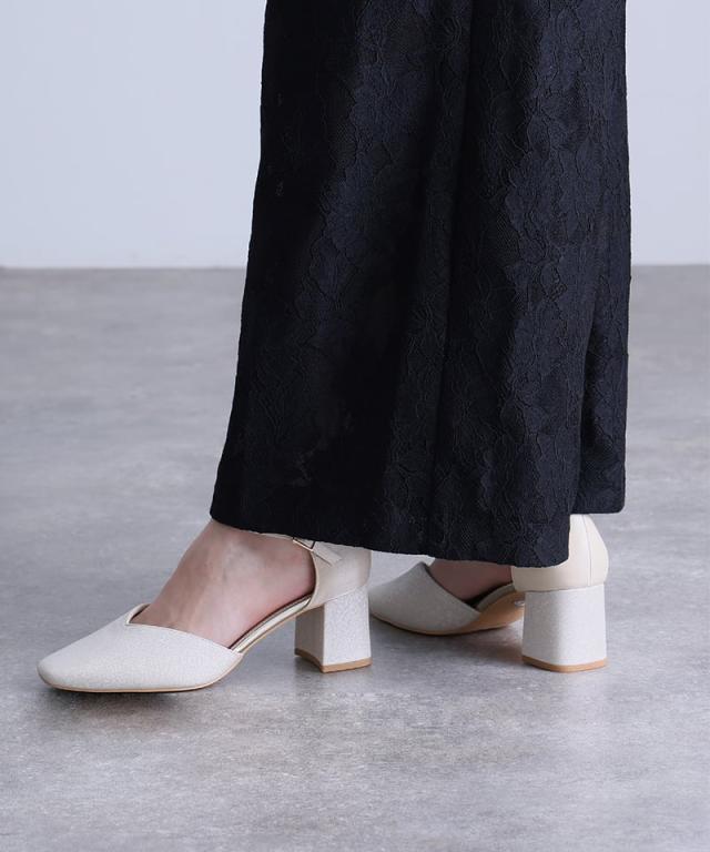 すっきりとしたスクエアトゥに、華奢なストラップを合わせた上品なパンプス。