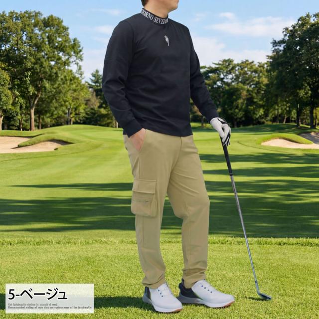 送料無料 ゴルフパンツ メンズ ゴルフウェア GIORNO SEVEN ジョルノセブン ストレッチ ウエストゴム サイドカーゴポケット ロゴ刺繍 ボトムス 春夏秋冬 ネコポス