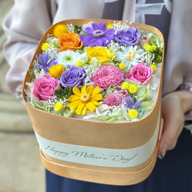 ★配送エリア限定★2026Mother’s Gift プリザーブドフラワー「ブルームベントL カラフル」