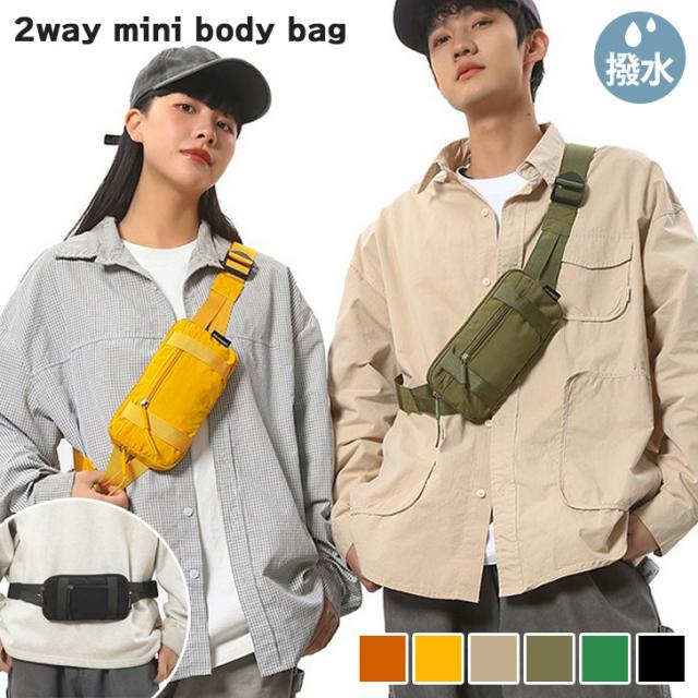 新作 2way撥水ウォッシュ加工ナイロンミニボディバッグ レディース メンズ ボディバッグ 軽量 軽い ウエストポーチ 小さめ ウエストバッグ ヒップバッグ ショルダーバッグ 肩掛け 斜めがけ デイリー おしゃれ