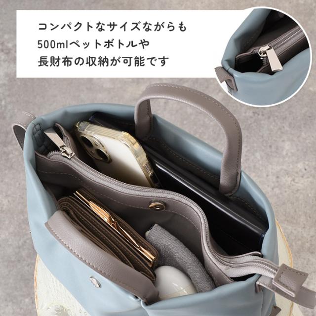 コンパクトなサイズながらも500mlペットボトルや長財布の収納が可能