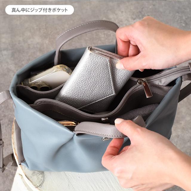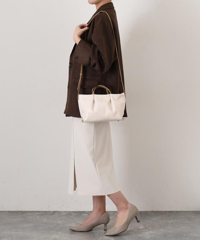 なめらかな微光沢生地を使用した合皮ミニショルダーバッグ