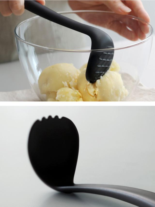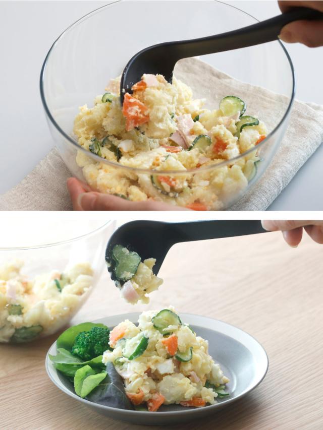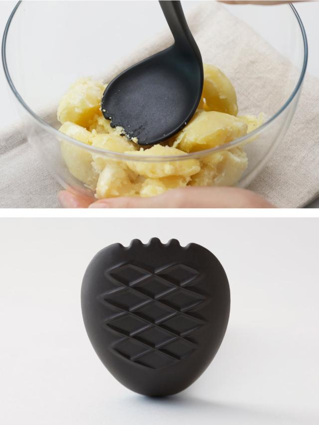 マッシュした後の工程まで考えたスプーン形状。つぶすだけでなく、そのまま和える・混ぜる・盛り付ける作業までスムーズに行えます。