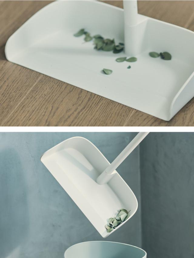 ちりとりの先端が床にしっかり接地する設計で、ゴミを隅々まで逃さず集められます。内側の段差がゴミの戻りを防ぎ、掃除の効率をアップ。さらにコンパクトな形状なので、少し傾けるだけでゴミを簡単に捨てられ、手軽に掃除を完了できます。