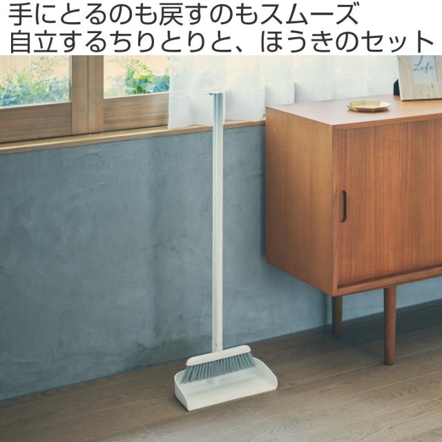 marna マーナ スタンドほうきちりとり W664W ( ほうき ちりとり セット 室内 屋外 自立式 玄関 ベランダ 掃除 ヘッドが動く 軽量 長柄 スリム 白 シンプル 立つ 掃き掃除 清掃 屋内 庭 そうじ 掃除グッズ )