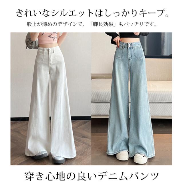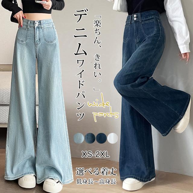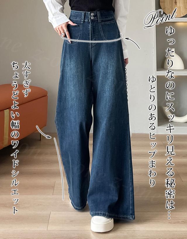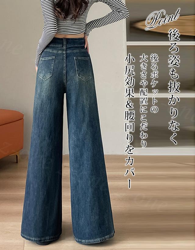 デニムパンツ ワイドパンツ 裏起毛あり 裏起毛なし 暖かい あったか 保温 ワイドデニム 春新作 秋冬 送料無料 レディース ボトムス カシュアル 体型カバー ゆったり ハイウエスト ジーンズ 美脚