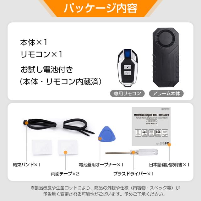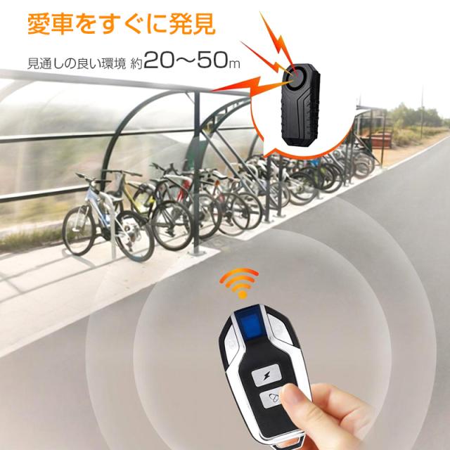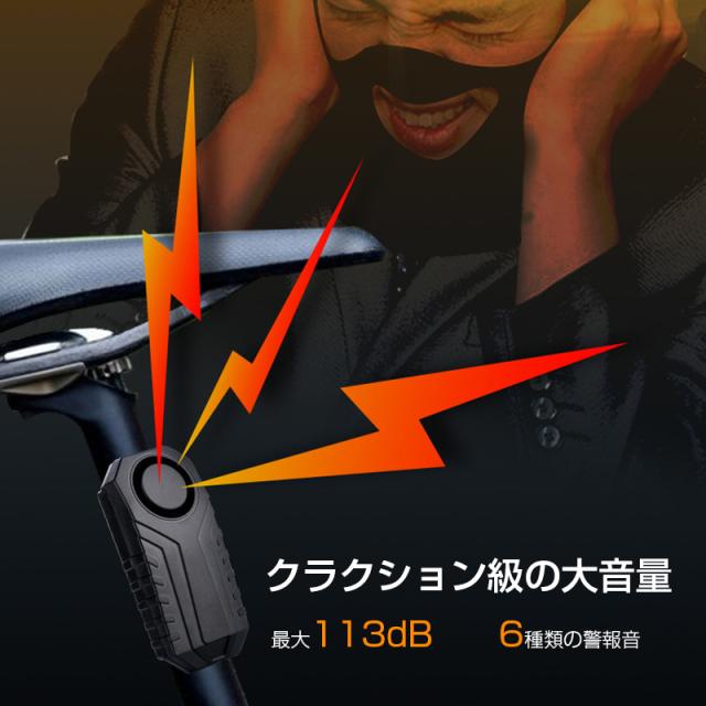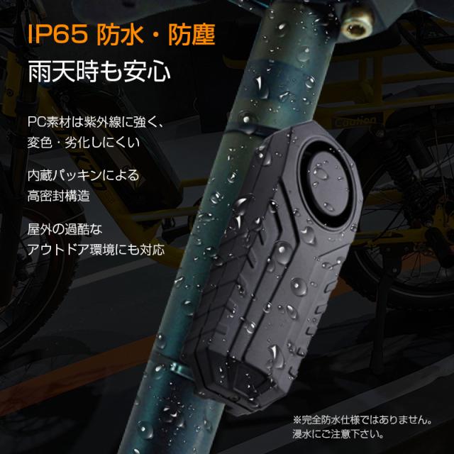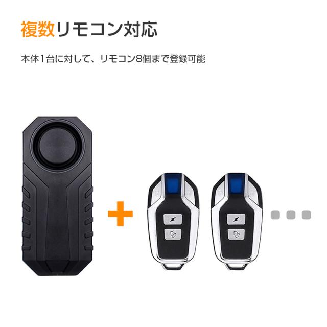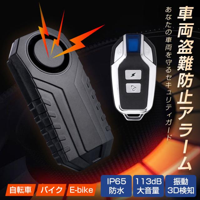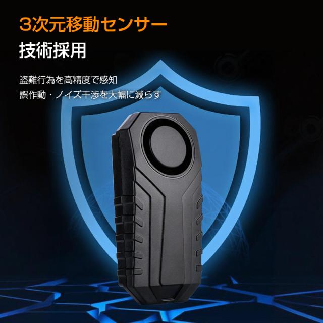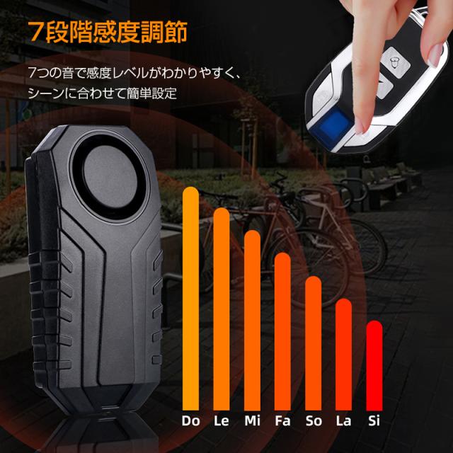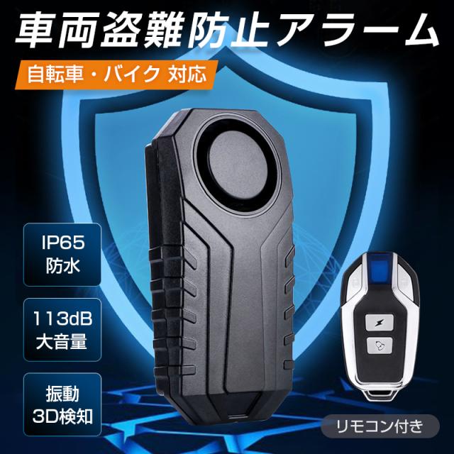 自転車 バイク 車 盗難防止 防犯 アラーム 大音量 ブザー 防水 振動 検知 セキュリティ センサー 配線不要 リモコン付き 電池付き 音量3段階 感度7段階 簡単設定