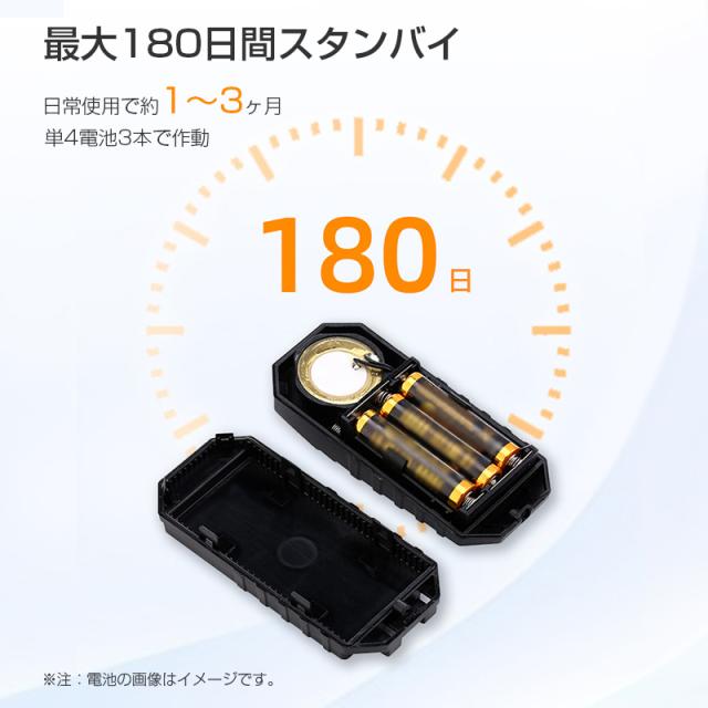待機時間は最長180日間。届いてすぐ使えるお試し電池付き。