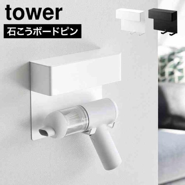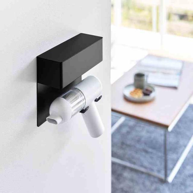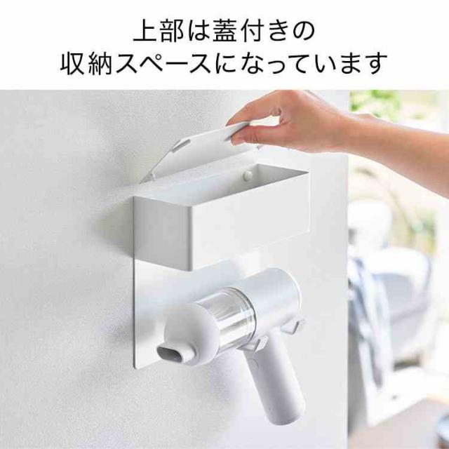 山崎実業 壁付けミニ掃除機ホルダー タワー 公式 tower 10787 10788 ホワイト ブラック ウォールクリーナーホルダー ハンディクリーナー 収納 壁面収納 蓋付き デスク周り 卓上クリーナー 石こうボードピン コンパクト 省スペース 浮く 正規品 パーツ収納 シンプル おしゃれ