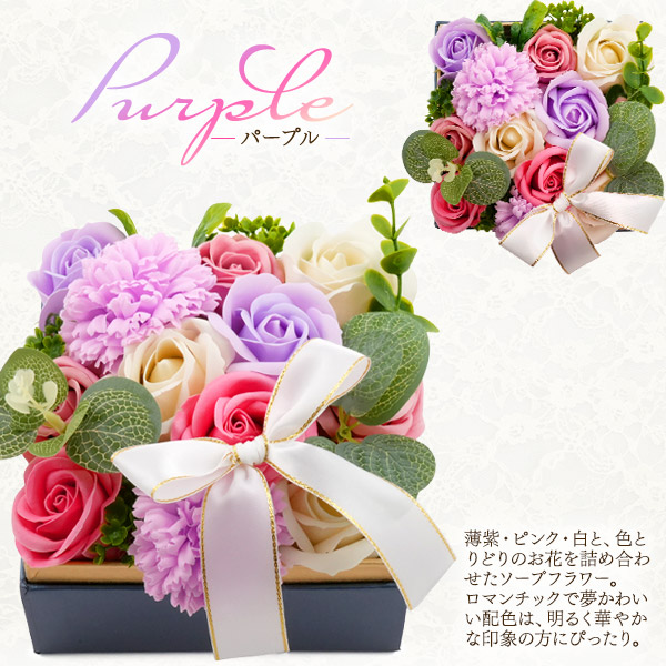 ※ソープフラワーは石鹸素材から作られた香り付きの観賞用のお花のため、普通の石鹸・入浴剤のように使用することはできません。