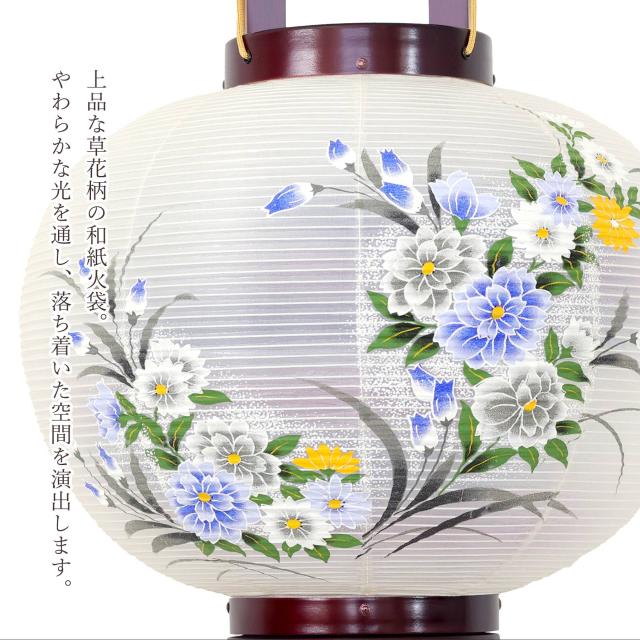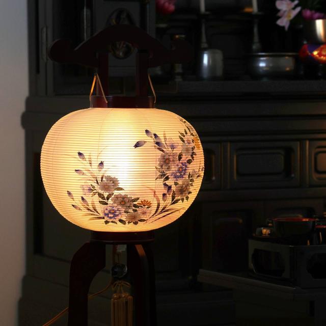 灯せば回想と安らぎのひと時へいざなう、ほのかなオレンジの光。9号サイズはお部屋に映える存在感、ご先祖に敬意を表して華やかに。
