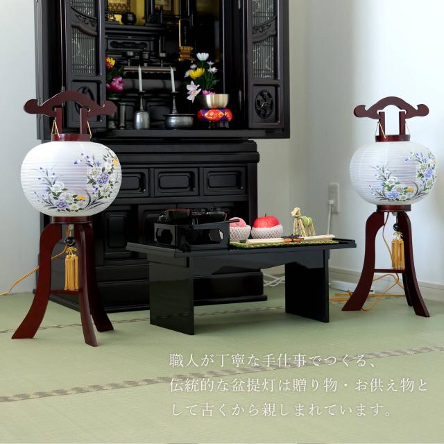 職人が丁寧な手仕事でつくる、三本足の伝統的な盆提灯は、贈り物・お供え物として古くから親しまれています。