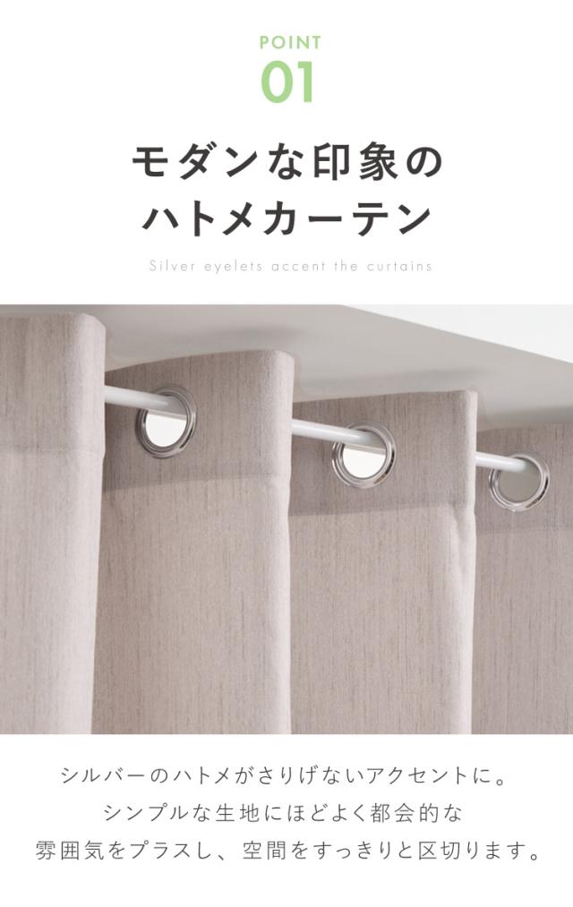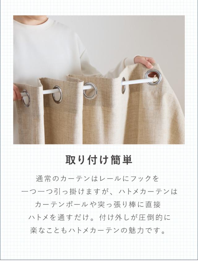 カーテン上部のハトメ(金属リング)にポールを通して使うタイプです。