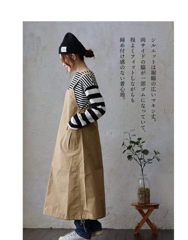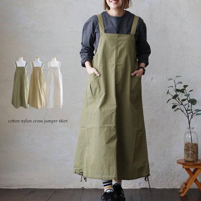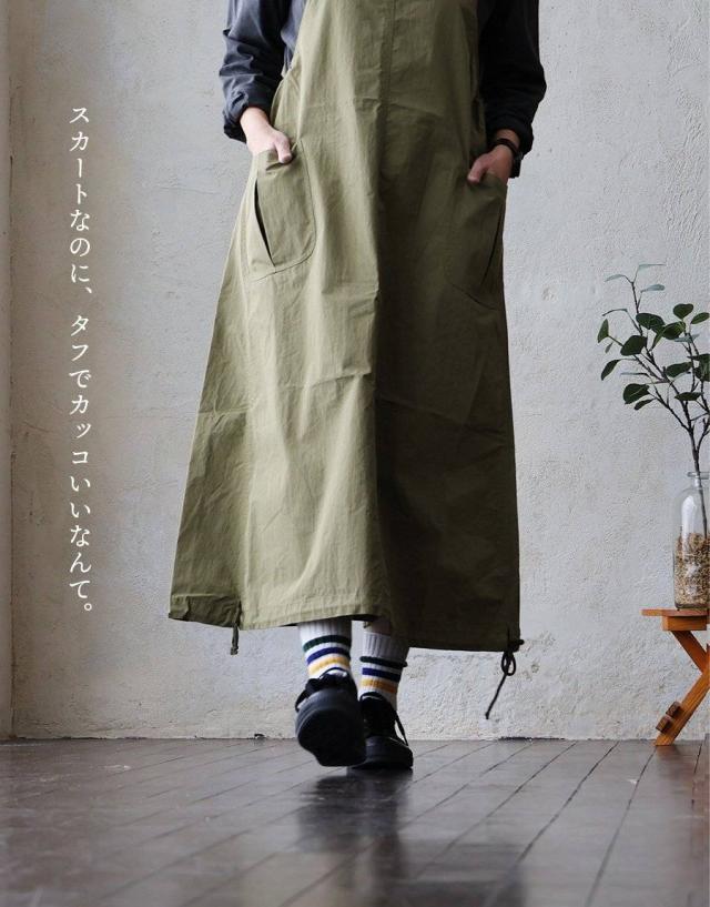 ジャンパースカート ジャンスカ スカート マキシ丈 レディース 無地 コットン ナイロン 高密度 ハリ タフ しっかり生地 大きいサイズ 体型カバー カジュアル パティ