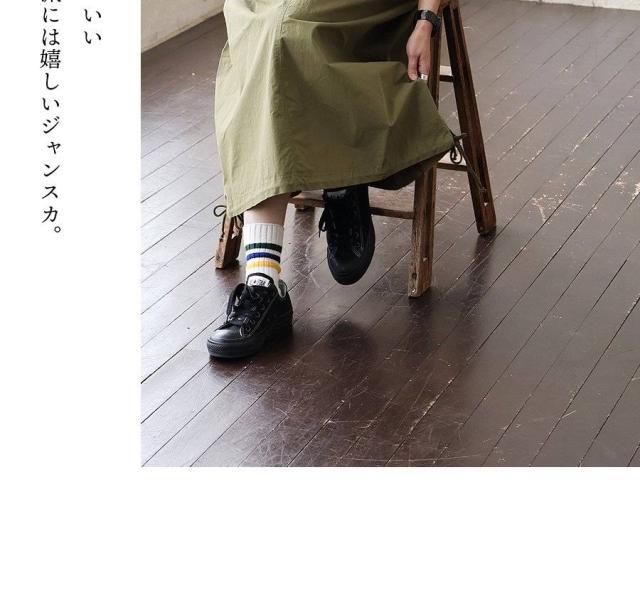 ・目が詰まりハリのある生地がストンっと落ち感を作り、広がりすぎないジャンスカ特有の縦のラインを美しくキレイに見せます。