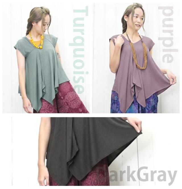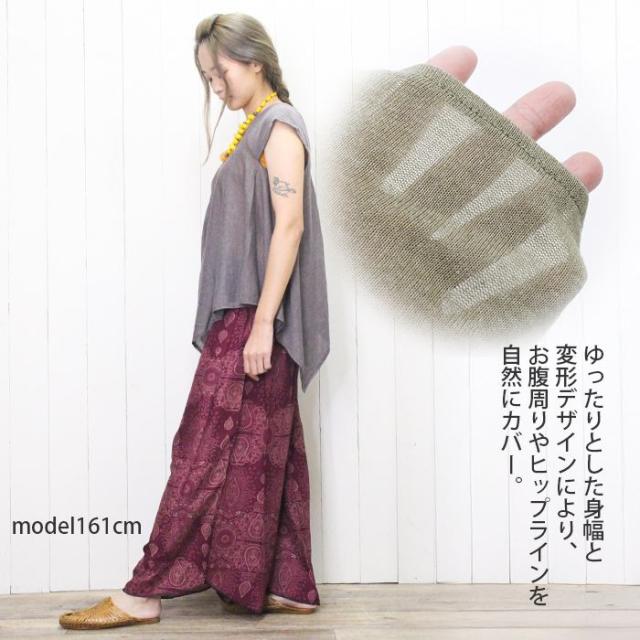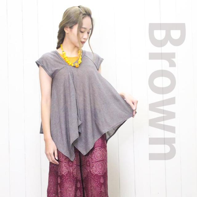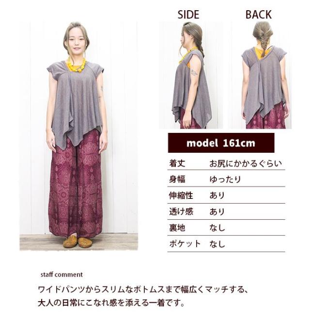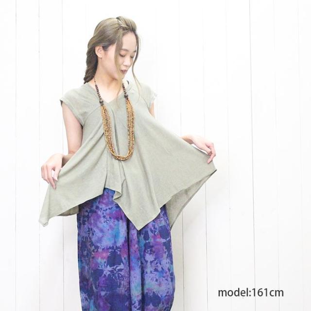 フレンチスリーブ 変形トップス チュニック ライトニット アシンメトリー ヘムライン ドレープトップス 裾変形 ドレープ 揺れ感 レイヤード 重ね着 透け感 薄手 涼しい 春夏 カジュアル エスニック