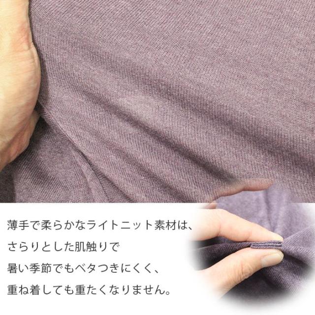 最大の特徴である不規則な裾のヘムラインは、動くたびに軽やかに揺れ、コーディネートに洗練されたリズムを与えてくれます。非常に薄手で柔らかなライトニット素材は、さらりとした肌触りで暑い季節でもベタつきにくく、重ね着しても重たくなりません。