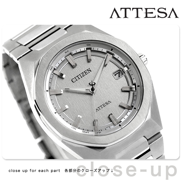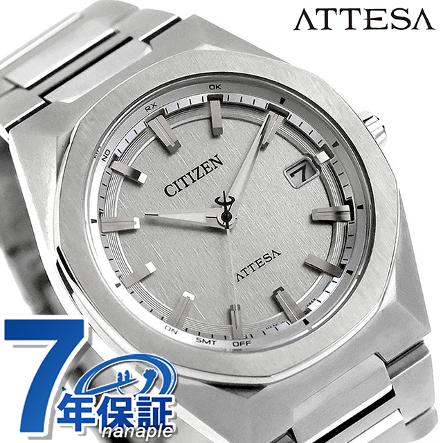 正規品 7年保証キャンペーン 送料無料 シチズン アテッサ ダイレクトフライト ACT Line チタン 電波ソーラー 日本製 エコ・ドライブ電波 メンズ 腕時計 CB3040-56H CITIZEN ATTESA アナログ シルバー ◆チタニウムで次世代を進み続ける、シチズン ATTESA(アテッサ)。八角形のコンパクトなケース、スポーティなデザインが人気の3針モデルに、メタリックなカラーと質感にこだわった新作の登場です。・力強く軽快なデザインの「ACT Line」。八角形のベゼルを搭載し、ソリッドな表情がきわだつコンパクトな3針モデルの新仕様です。・文字板は、再生ポリカーボネートにヘアラインの成型パターンを施し、メタリック塗装を組み合わせることで、金属の一枚板を思わせる仕上がりを実現。下板、上板、見返しリングで構成される3体構造が立体感を生み出し、シンプルな中にもソリッドな力強さを感じさせます。・外装もすべてシルバーのワントーンでまとめた、清潔感あふれるすっきりとしたルックス。メタリックな質感を追求した文字板と美しく調和しています。 発売日:2026年3月発売
